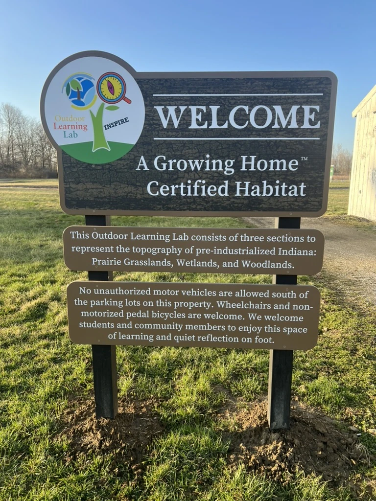 The Inspire Academy Outdoor Learning Lab is designed to be a microcosm of pre-industrial Indiana, with three sections: wetlands, woodlands, and prairie grasslands. While the woodlands are still in the development phase, the wetlands and prairie grasslands are available for daily use by teachers, students, and our community.